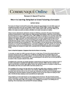 Going Back to School Following a Concussion October 31, 2023 Category: Comments Off on Going Back to School Following a Concussion Download Preview File Type: pdf Categories: Concussion Information, Health Information
